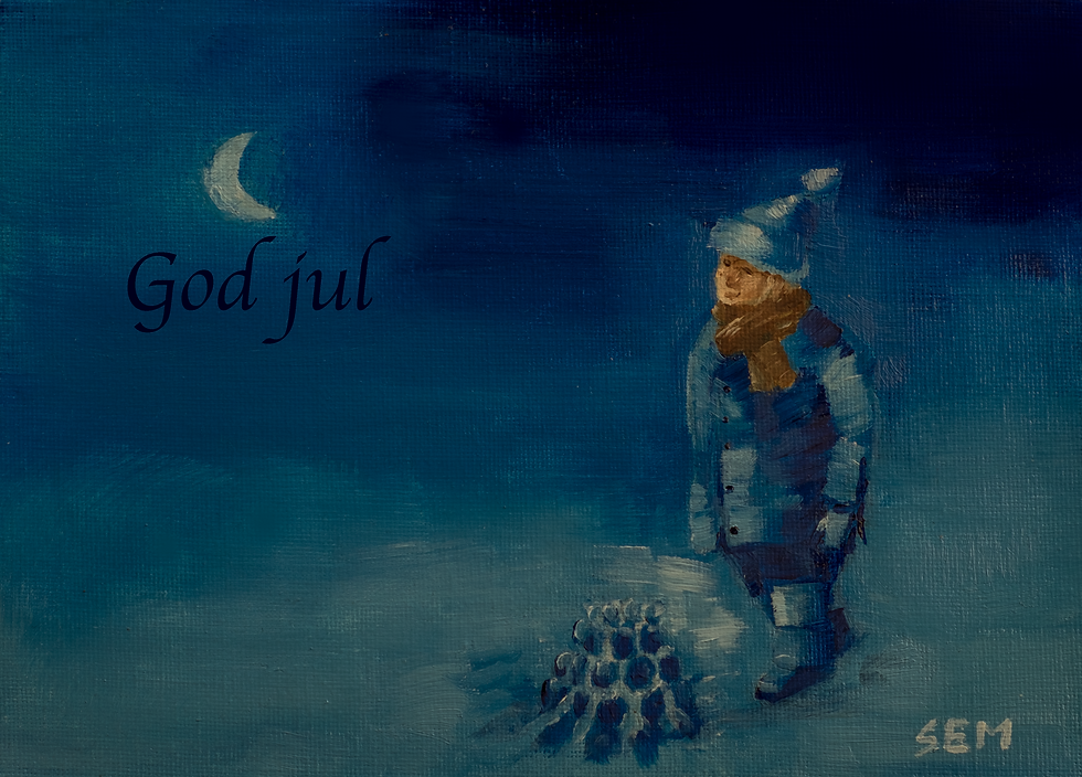 Her er julekortene som jeg har malt for i år: Dette øverste kortet ble jeg helt utsolgt for på Solamessen.
